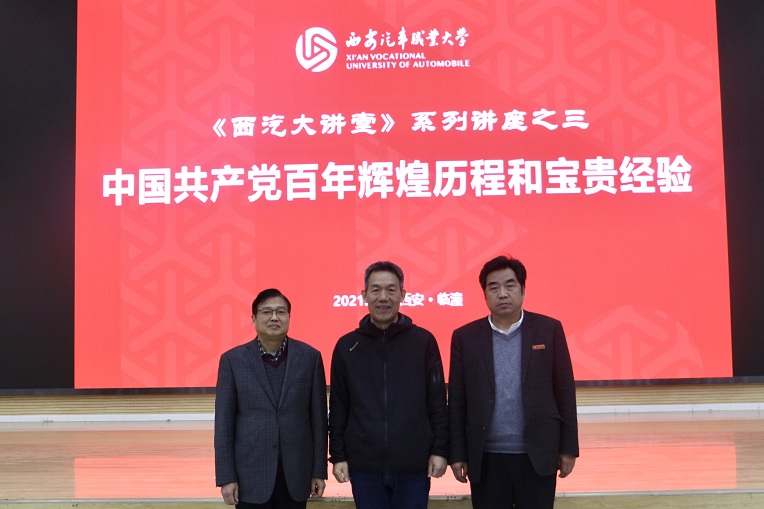 2021年4月1日下午,我校特邀西安财经大学闫团结教授在临潼校区渭水报告厅做题为“中国共产党百年辉煌历程和宝贵经验”的讲座,党委书记孙冰红、全体党政领导、思想政治课教师、入党积极分子参会,会议由校党委副书记、副校长吴毅主持。